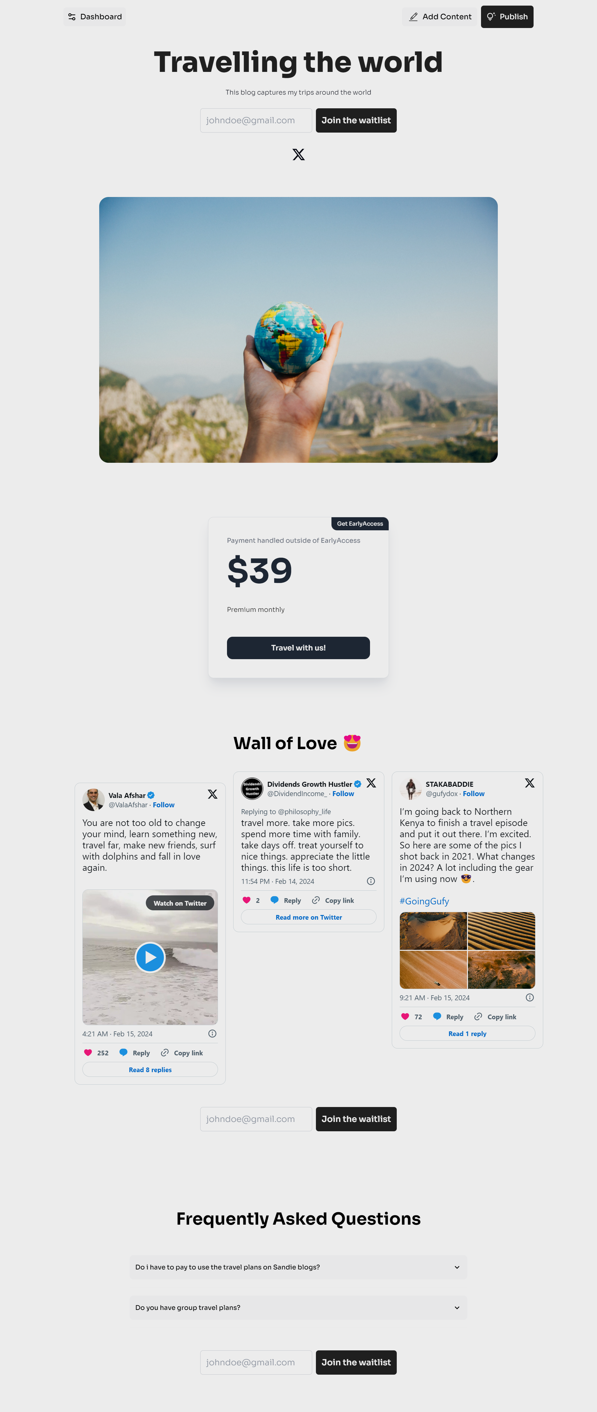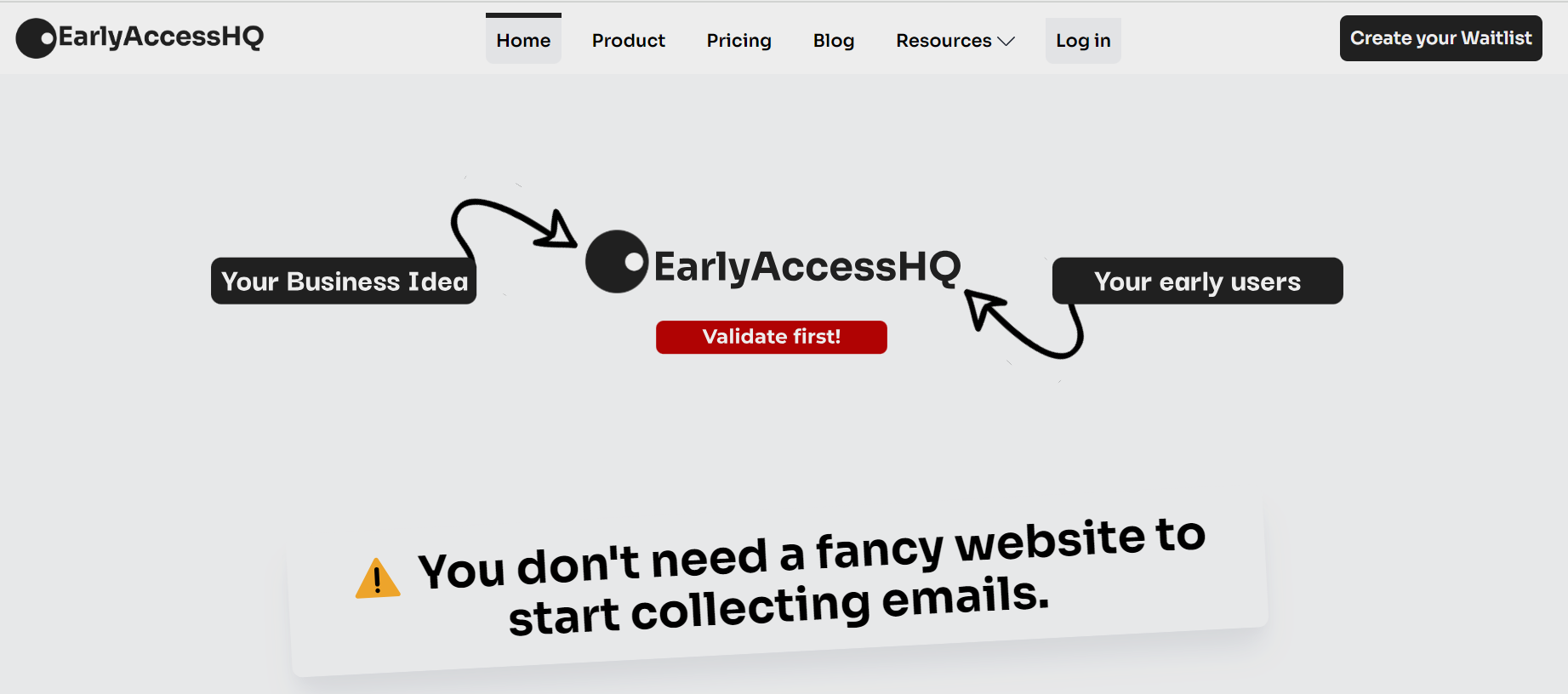 Sign up using email or Google to start using EarlyAccesshq.com. Then, Click on Create your Waitlist and start creating your first landing page.