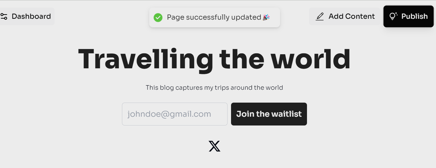 If all is well, click Publish to launch your landing page online. You will receive a notification that your site has been published.