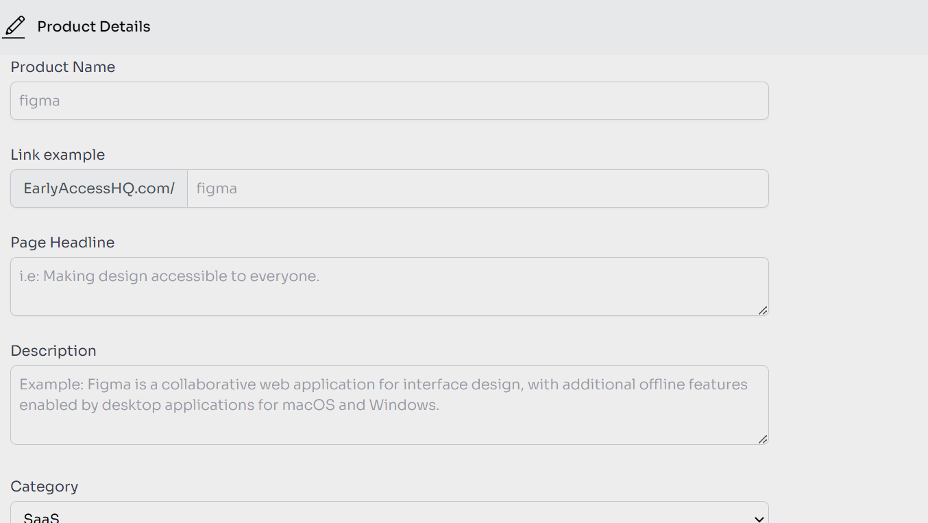 You have a variety of fields to fill in, including the product name, slogan, domain name, and category. The best part is the Waitlist feature that allows you to start collecting client emails.