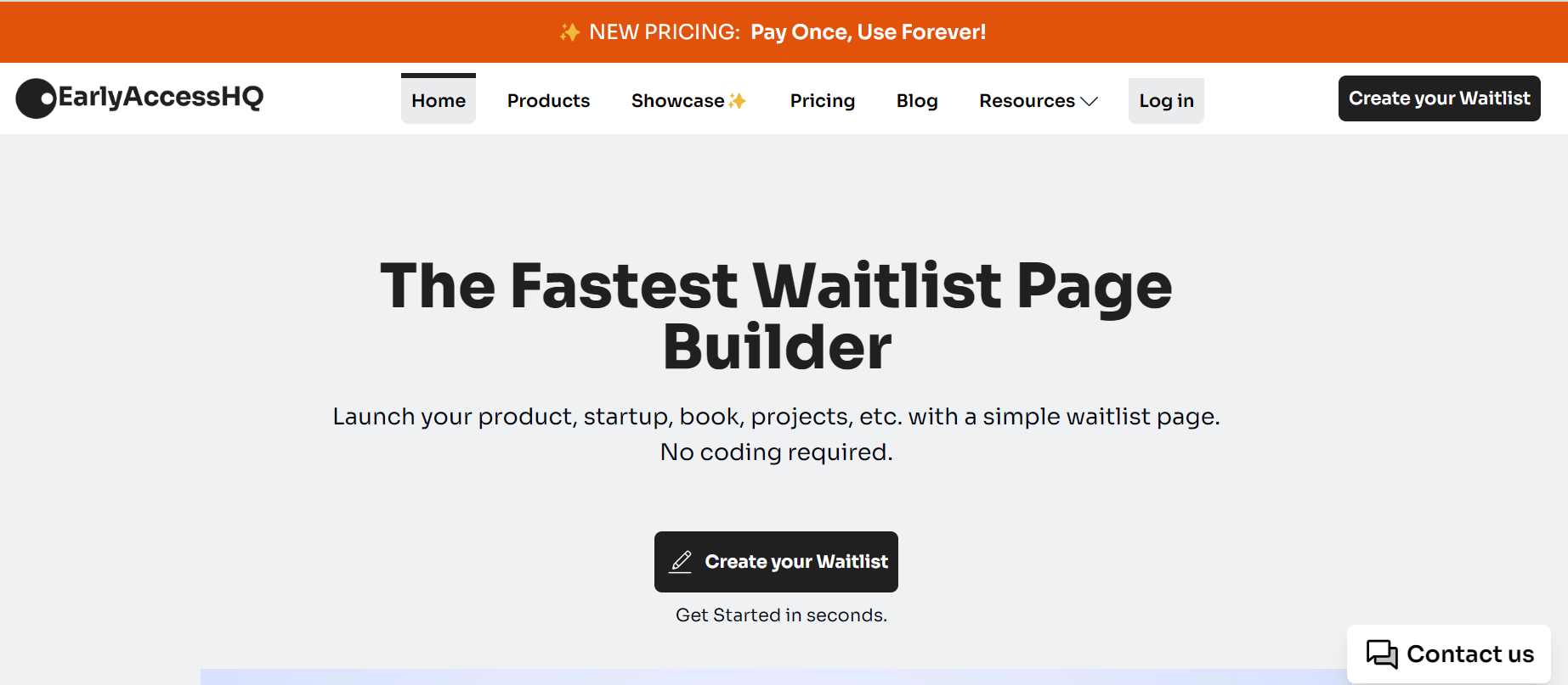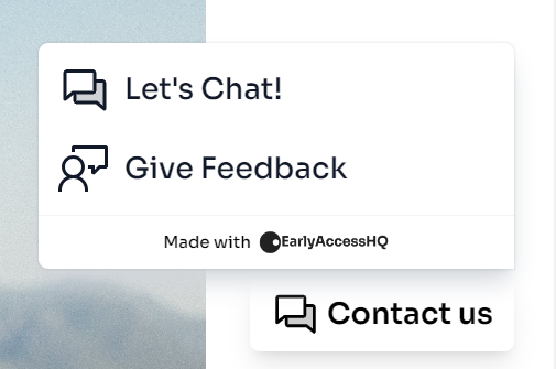 You now have the Contact Us widget on your landing page. Now potential customers can easily contact you from your EarlyAccesshq.com landing page.